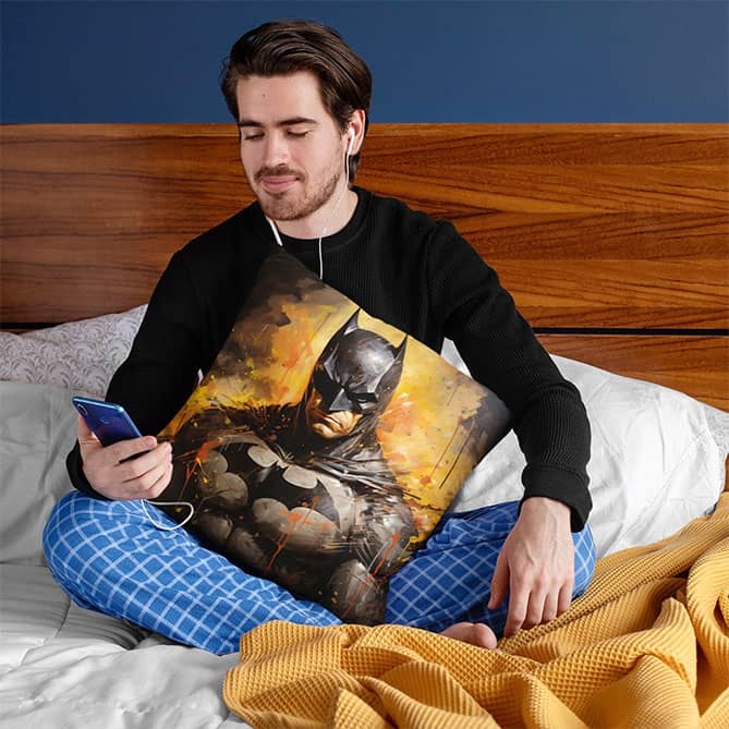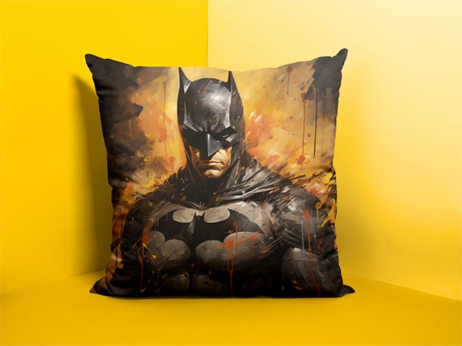 Декоративна подушка «Бетмен арт» пошита з м’якого, приємного на дотик флока. Наповнювач подушки – холлофайбер високої якості.