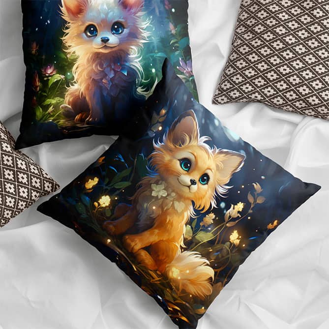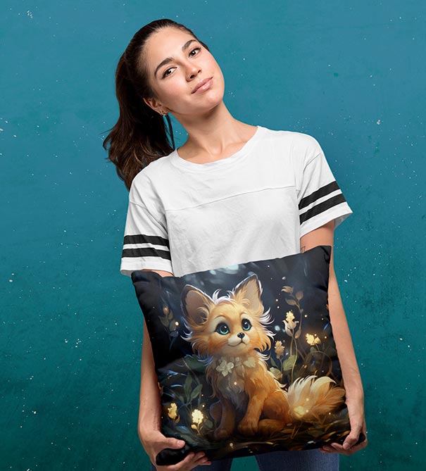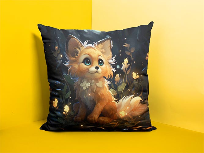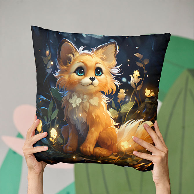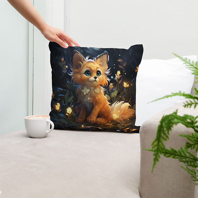 Декоративна подушка «Казковий ліс. Миле лисенятко» пошита з м’якого, приємного на дотик флока. Наповнювач подушки – холлофайбер високої якості.