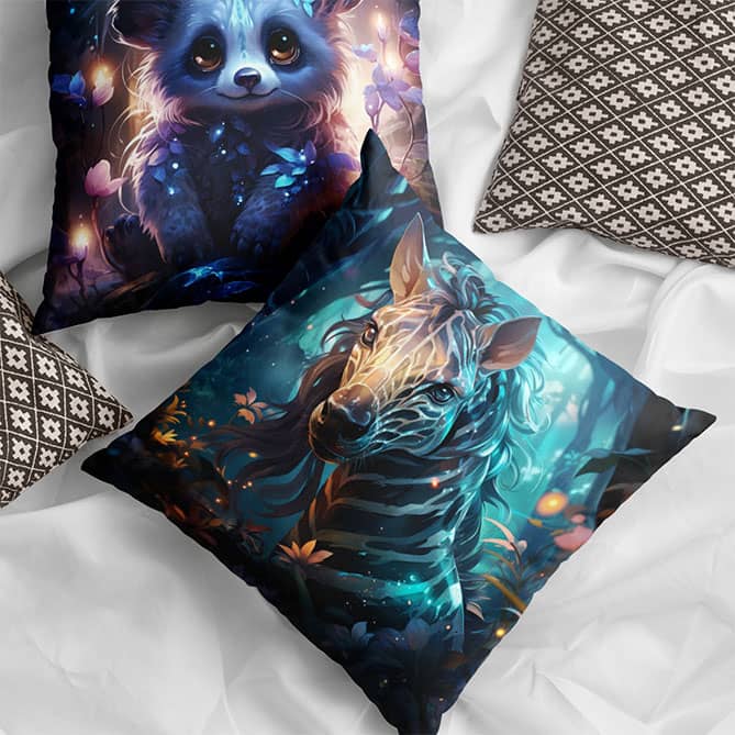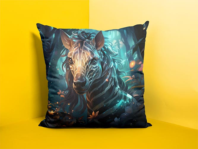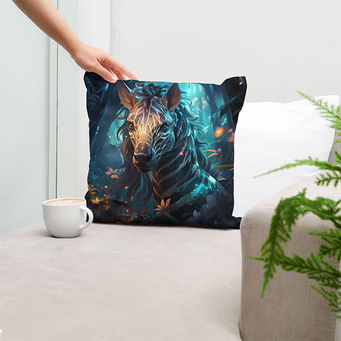 Декоративна подушка «Казковий ліс. Зебра» пошита з м’якого, приємного на дотик флока. Наповнювач подушки – холлофайбер високої якості.