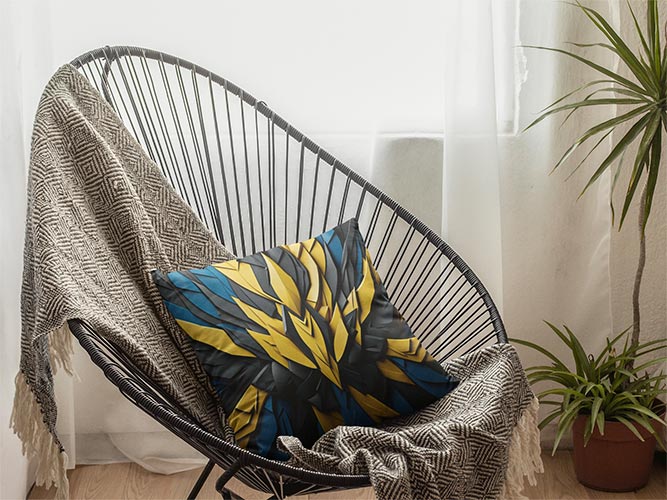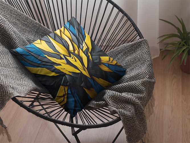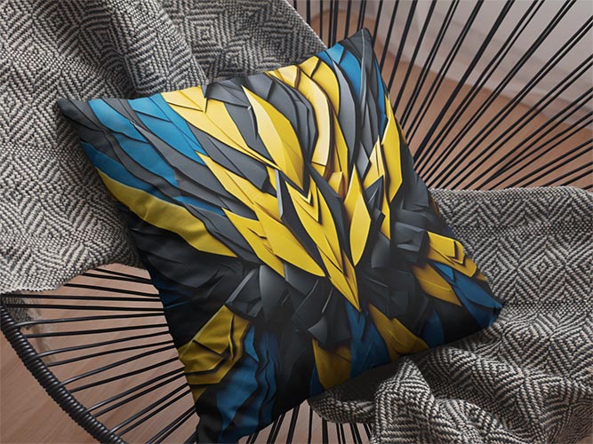 Подушка має 2 чохли: внутрішній з наповнювачем та зовнішній задрукований чохол з прихованою блискавкою, який можна зняти для прання або заміни.