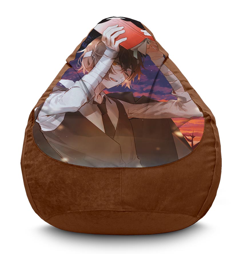 Крісло мішок “Дазай з книжкою. Літературні генії Бродячі Пси. Флок. Dazai with book. Bungo stray dogs. Flock” ідеально підходить для будинку, офісу або кафе. В кріслі груші “Дазай з книжкою. Літературні генії Бродячі Пси. Флок. Dazai with book. Bungo stray dogs. Flock” зручно дивитися кіно онлайн, грати, читати книги, відпочивати з друзями.