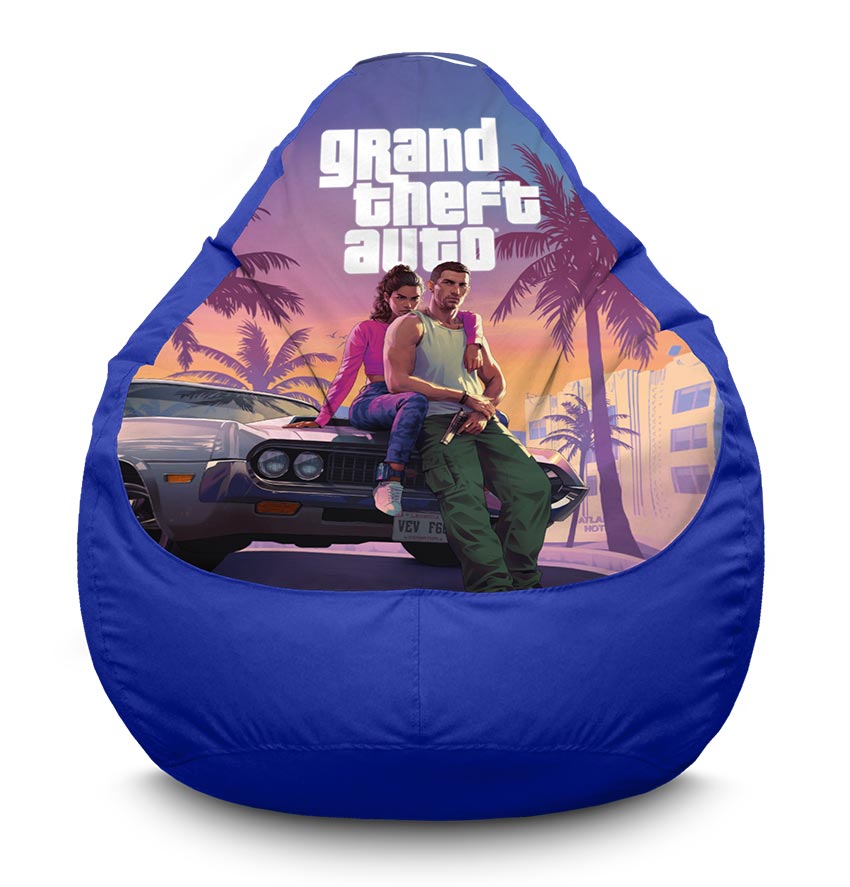 Крісло мішок «GTA 6. Головні герої. Main characters. Horizontal. Blue. Oxford» ідеально підходить для будинку, офісу або кафе. В кріслі груші «GTA 6. Головні герої. Main characters. Horizontal. Blue. Oxford» зручно дивитися кіно онлайн, грати, читати книги, відпочивати з друзями.