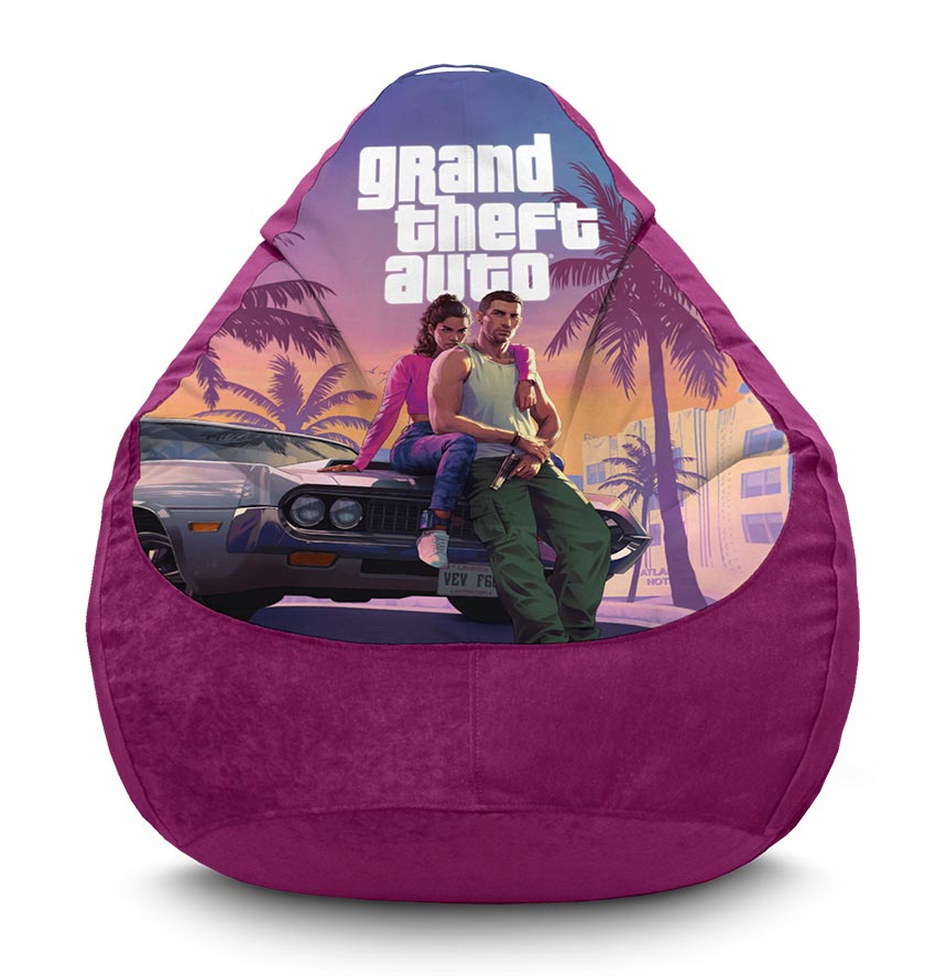 Крісло мішок «GTA 6. Головні герої. Main characters. Horizontal. Purple. Flock» ідеально підходить для будинку, офісу або кафе. В кріслі груші «GTA 6. Головні герої. Main characters. Horizontal. Purple. Flock» зручно дивитися кіно онлайн, грати, читати книги, відпочивати з друзями.