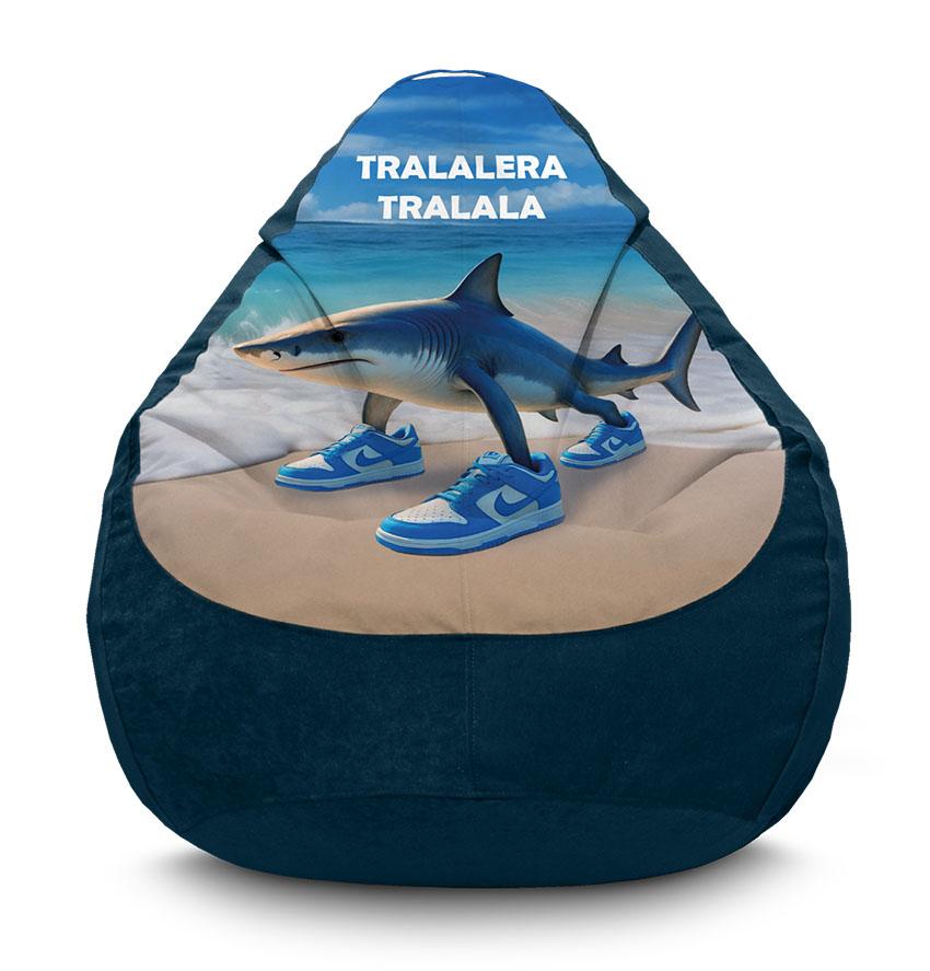 Крісло мішок «Тралалело Тралала. Акула. Мем. Trallallero Trallala. Shark. Meme. Flock» ідеально підходить для будинку, офісу або кафе. В кріслі груші «Тралалело Тралала. Акула. Мем. Trallallero Trallala. Shark. Meme. Flock» зручно дивитися кіно онлайн, грати, читати книги, відпочивати з друзями.