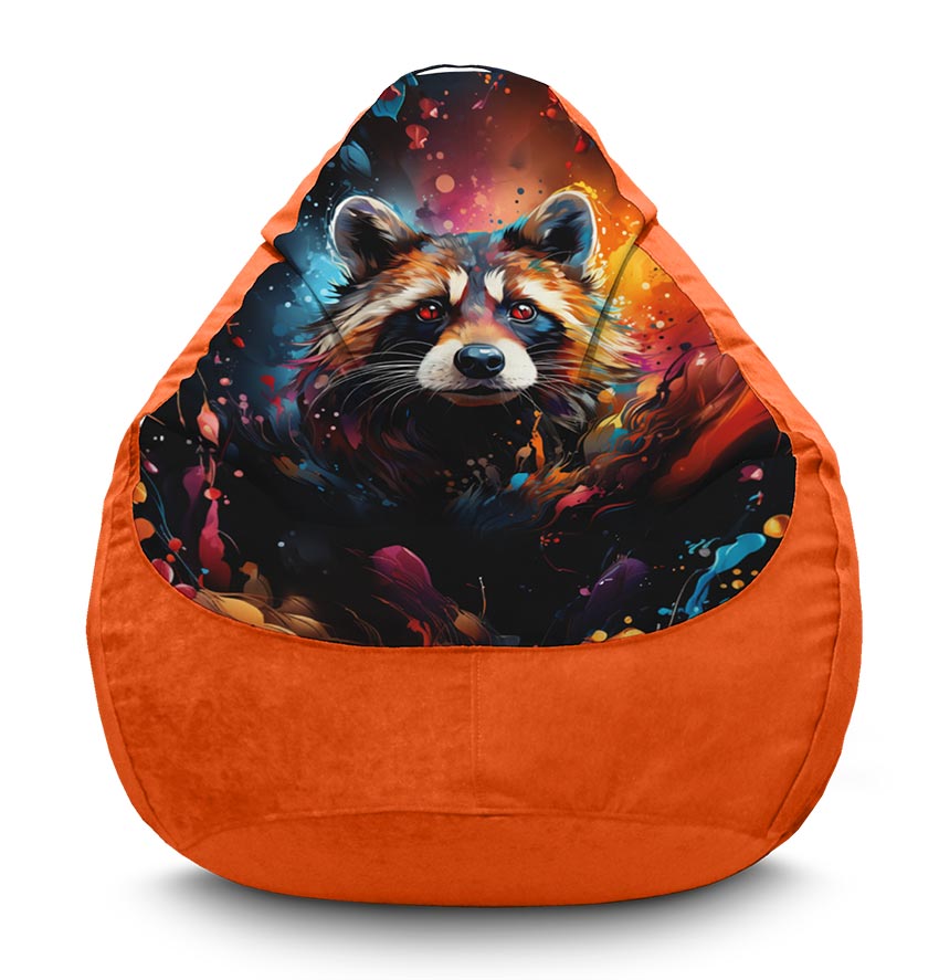 Крісло мішок «Єнот у фарбах. Raccoon in paints. Flock» ідеально підходить для будинку, офісу або кафе. В кріслі груші «Єнот у фарбах. Raccoon in paints. Flock» зручно дивитися кіно онлайн, грати, читати книги, відпочивати з друзями.