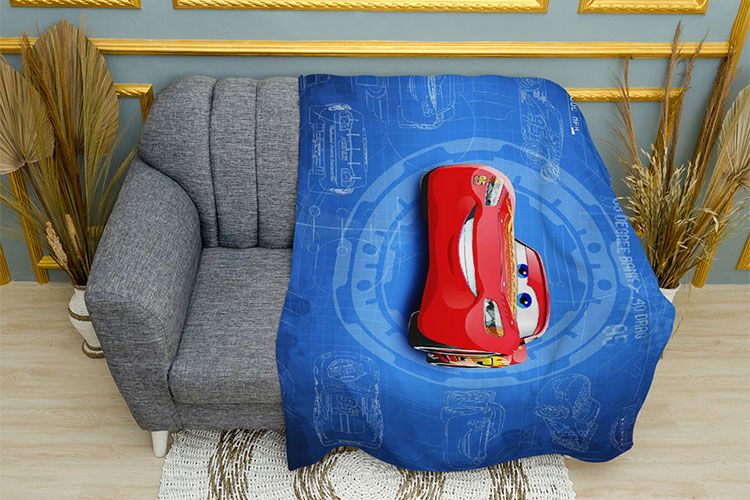 Яскравий плед з принтом Блискавки МакКвіна сподобається юним фанатам мультфільму Тачки. Дизайн передає динаміку перегонів та настрій перемоги. Ідеально підходить для сну, відпочинку вдома або затишних вечорів перед телевізором.