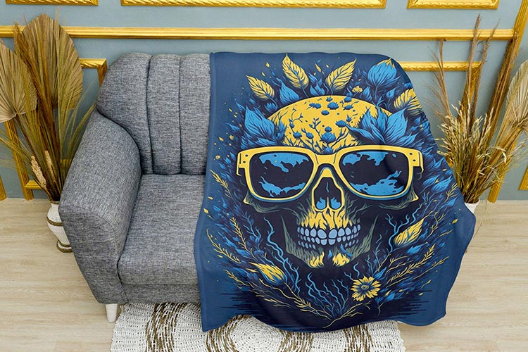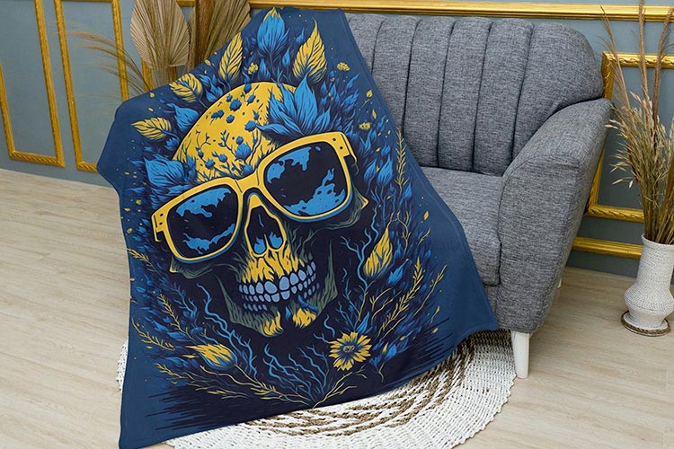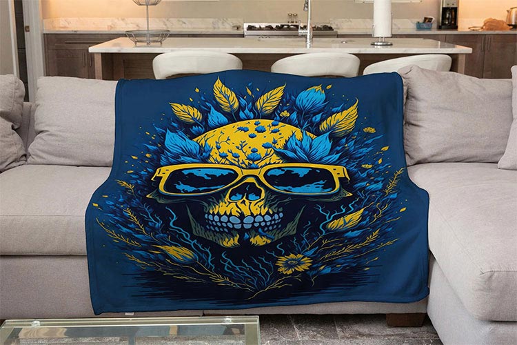 Шукаєте, що подарувати близькій людині? Плюшевий плед «Череп» синій з яскравим друком це чудовий подарунок, що порадує очі та зігріє прохолодними вечорами, і кожного разу при використанні вас будуть згадувати теплими думками.