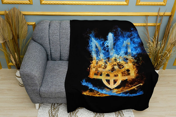 Шукаєте, що подарувати близькій людині? Плюшевий плед «Герб України з вогнем та шаблями» з яскравим друком це чудовий подарунок, що порадує очі та зігріє прохолодними вечорами, і кожного разу при використанні вас будуть згадувати теплими думками.