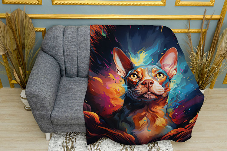 Шукаєте, що подарувати близькій людині? Плюшевий плед «Кіт сфінкс у фарбах» з яскравим друком це чудовий подарунок, що порадує очі та зігріє прохолодними вечорами, і кожного разу при використанні вас будуть згадувати теплими думками.
