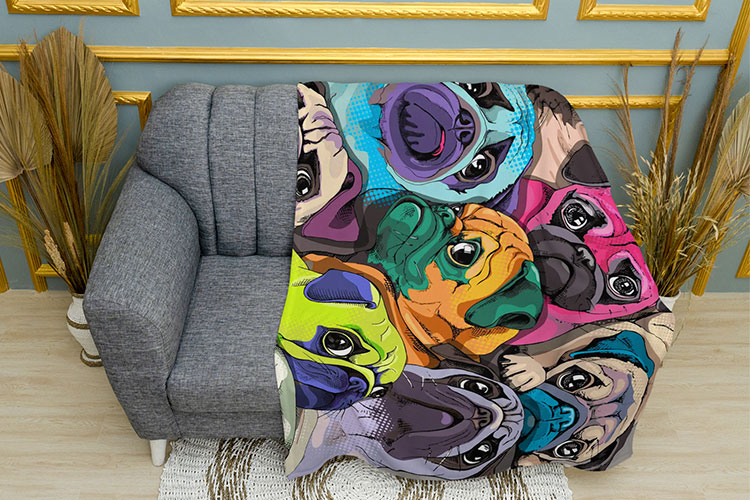 Як купити плед з принтом «Кольорові мопси. Colored pugs» в Україні та Києві?