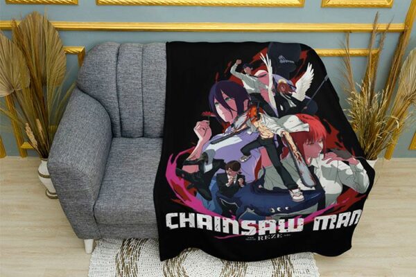 Принт з Людиною-Бензопилою передає боротьбу між людьми й демонами. У центрі — Денджі, оточений союзниками та ворогами, що символізує силу, жертву й хаос світу аніме. Плед з таким принтом підійде шанувальникам епічних історій, енергійних сцен та фанатам сучасної японської анімації.