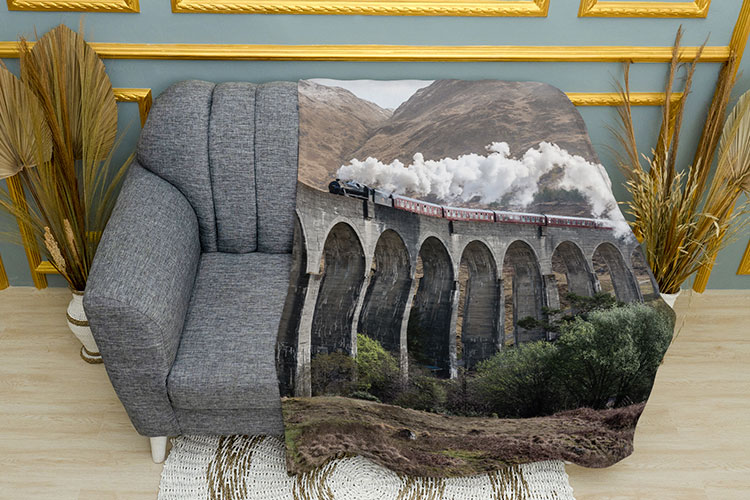 Як купити плед з принтом «Поїзд на мосту. Train on the bridge» в Україні та Києві?