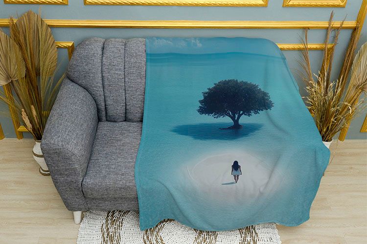 Тканина пледа «з 3D принтом Дівчина на острові. The girl on the island»