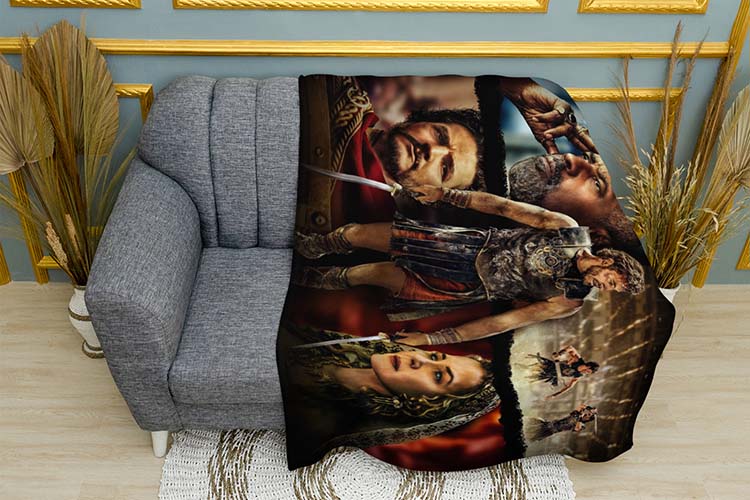 Принт демонструє сильних персонажів, передає дух давньоримських гладіаторських боїв. Поєднання відомих акторів та яскравих сцен створює насичену атмосферу. Плед з таким принтом підійде фанатам історичних фільмів, прихильникам бойових сцен та всім, хто цінує динамічний дизайн.
