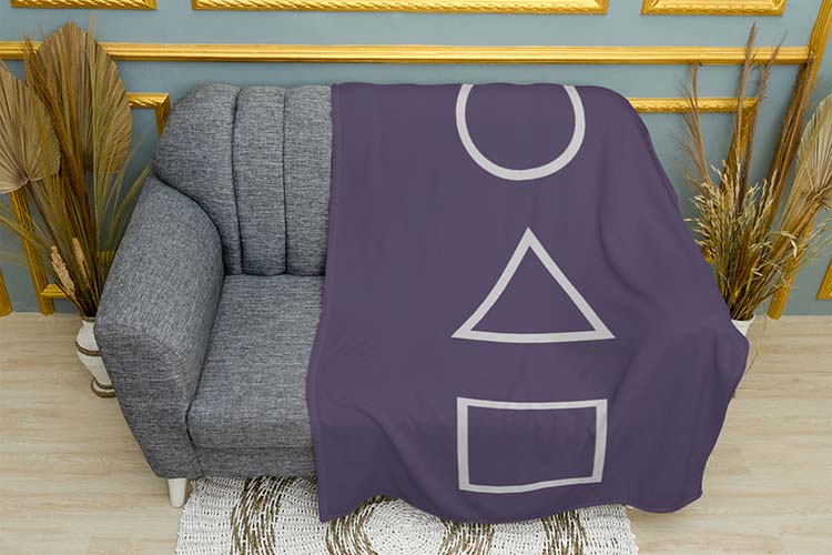 Цей принт зображує знакові геометричні фігури з гри, в якій учасники стикаються з вибором між життям і смертю. Унікальність дизайну полягає в простоті та глибокому символізмі. Плед з таким принтом підійде фанатам серіалу “Гра в кальмара”, які цінують стиль, але хочуть підкреслити свою любов до популярної культури.