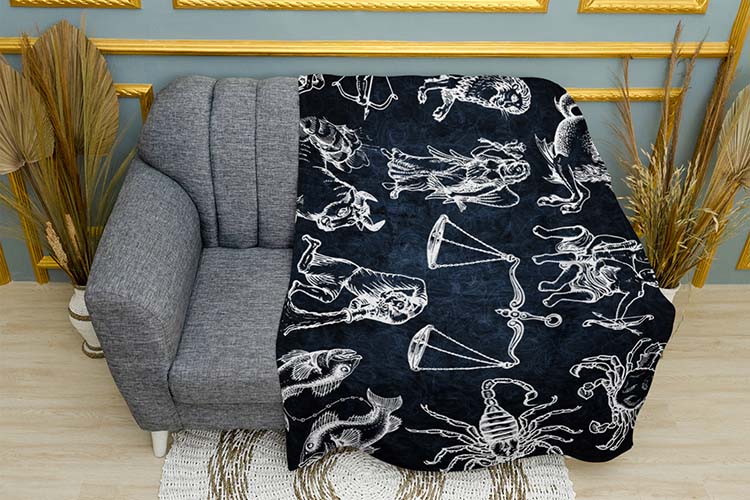 Знаки Зодіаку на глибокому синьому фоні символізують мудрість і таємницю космосу. Кожен знак нагадує про різноманітність характерів і доль. Унікальність цього пледу полягає в його здатності об’єднувати людей через спільний інтерес до астрології, наповнюючи простір затишком і натхненням. Ідеальний аксесуар для медитації, роздумів або просто для затишних вечорів вдома.