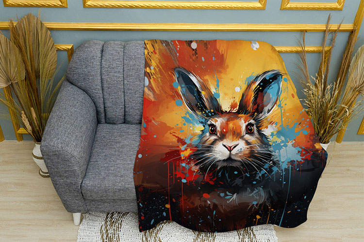 Шукаєте, що подарувати близькій людині? Плюшевий плед «Заєць у фарбах. Hare in colors» з яскравим друком це чудовий подарунок, що порадує очі та зігріє прохолодними вечорами, і кожного разу при використанні вас будуть згадувати теплими думками.