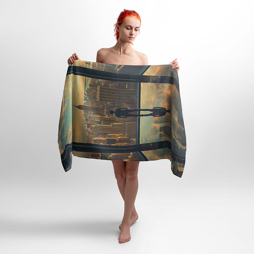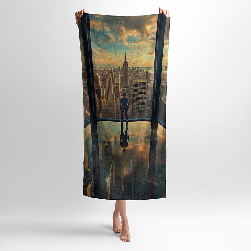 Принт передає відчуття свободи, амбіцій та сили. Людина на висоті над містом символізує прагнення до великих цілей та сміливість йти вперед. Рушник з таким принтом ідеально підійде тим, хто любить урбаністику, мотивацію та надихається панорамами мегаполісів.