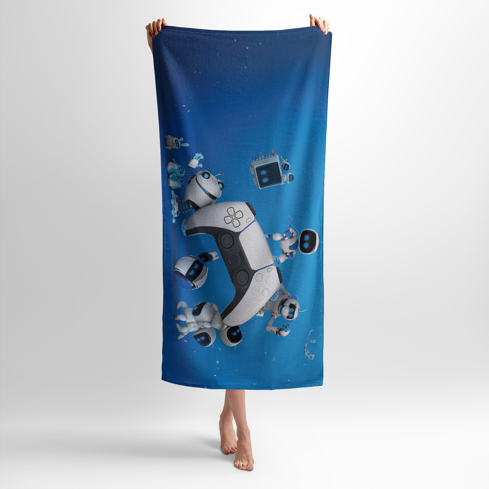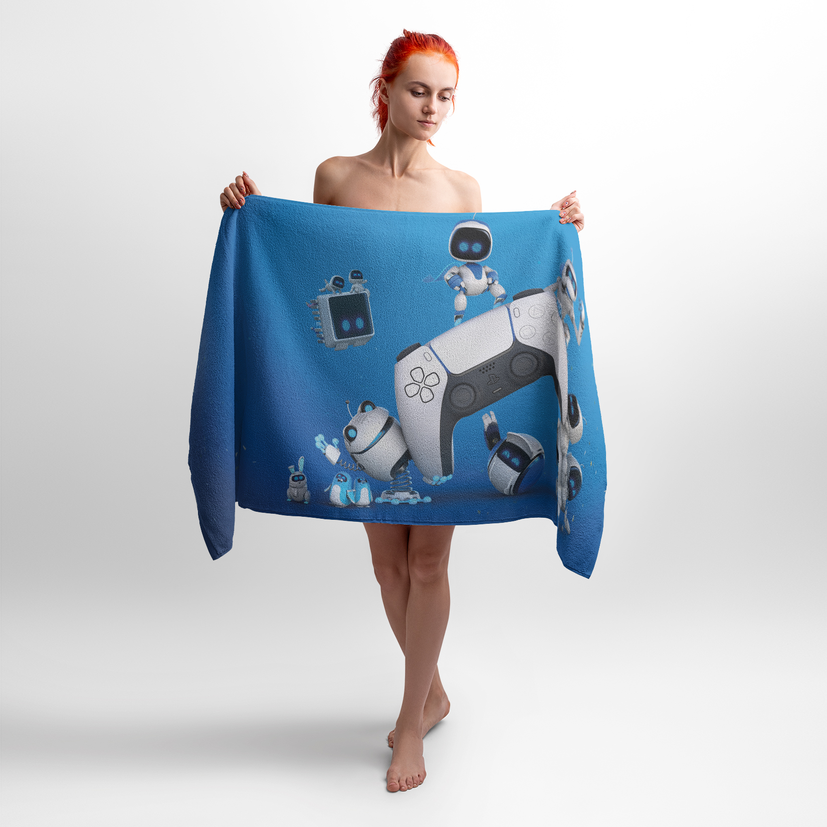 Цей принт поєднує геймпад із милими роботами в невагомості. Рушник з таким принтом стане ідеальний подарунком для фанатів PlayStation, геймерів та любителів футуристичного дизайну.