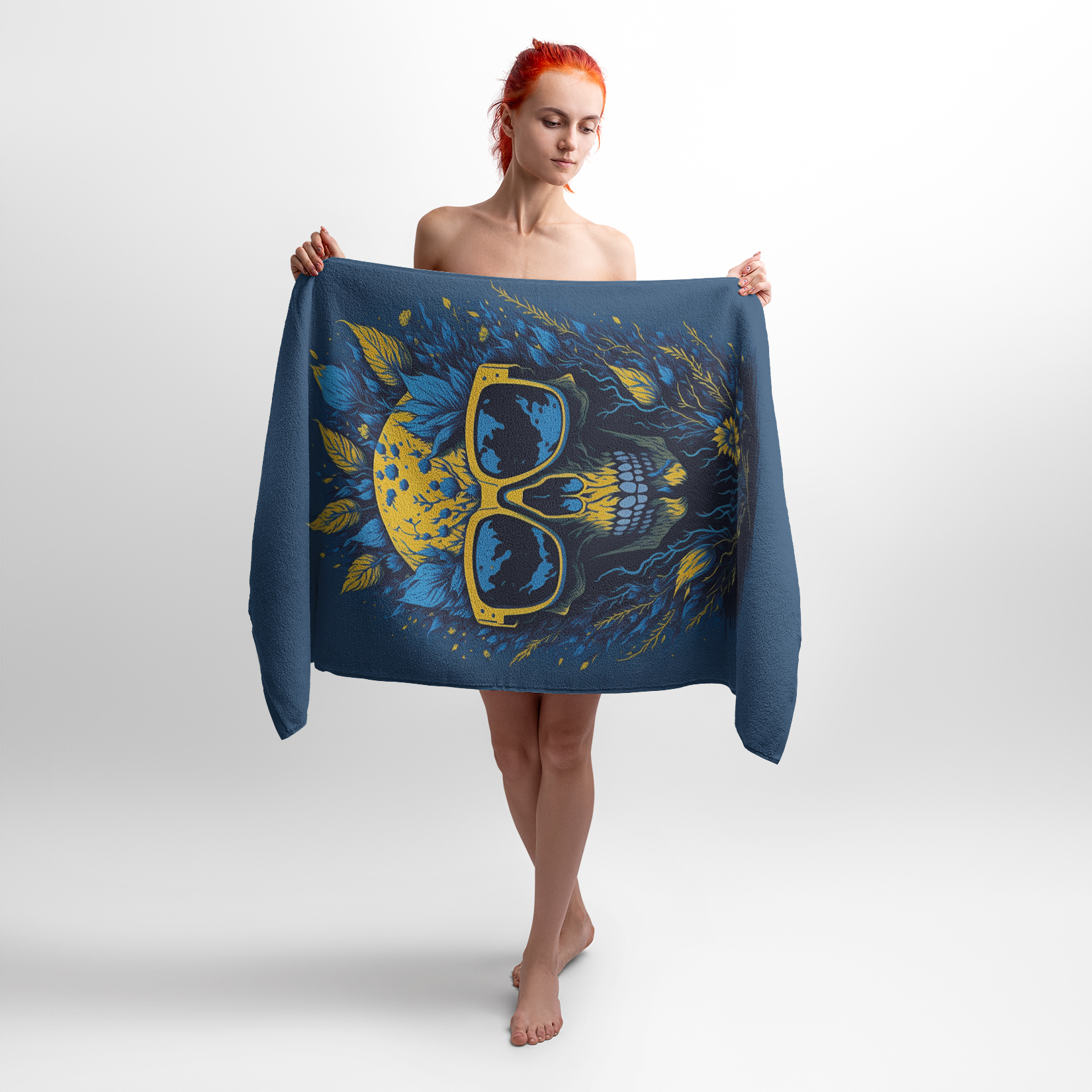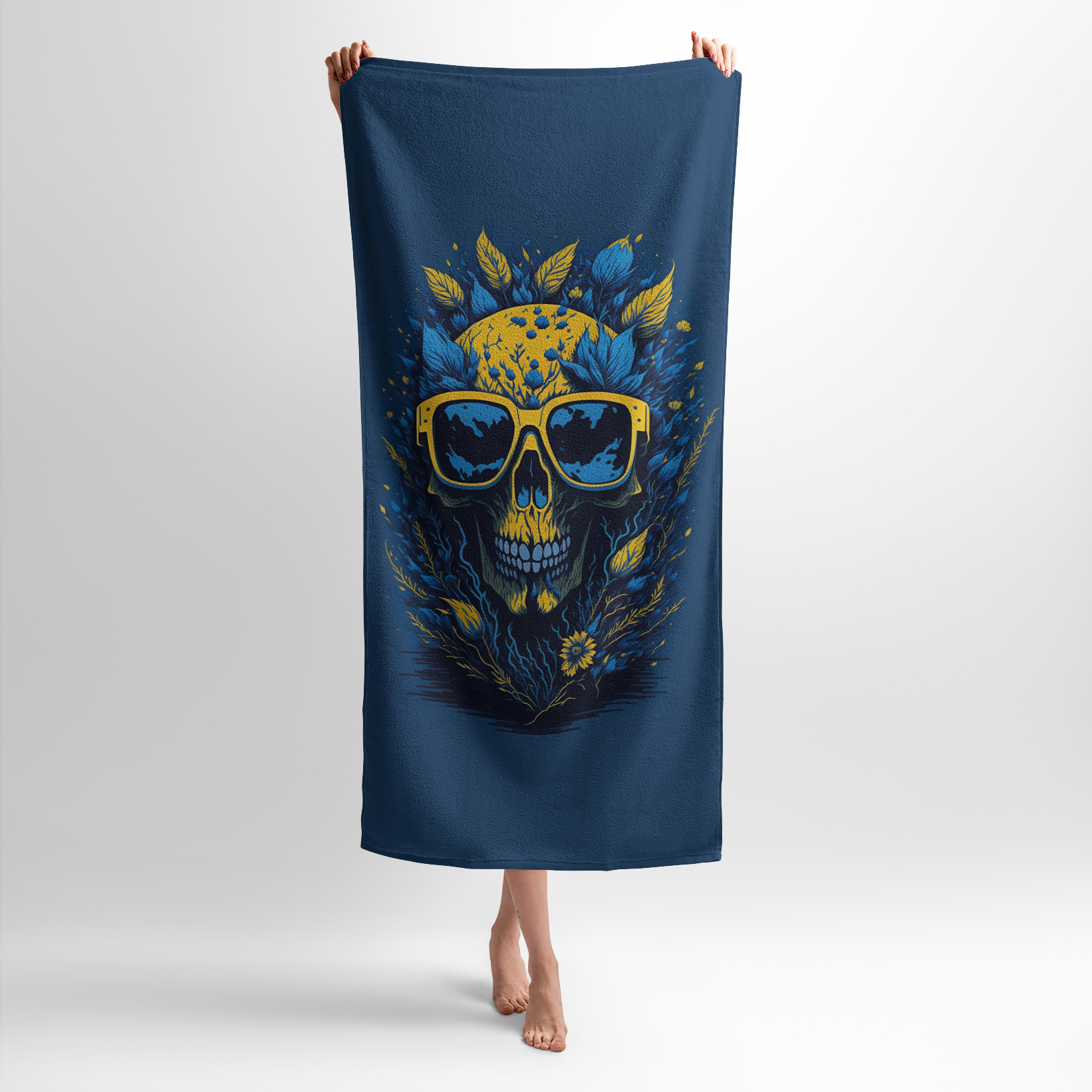 Як купити рушник з принтом «Череп у квітах. Синьо-жовтий. Skull in flowers. Blue and yellow» в Україні та Києві?