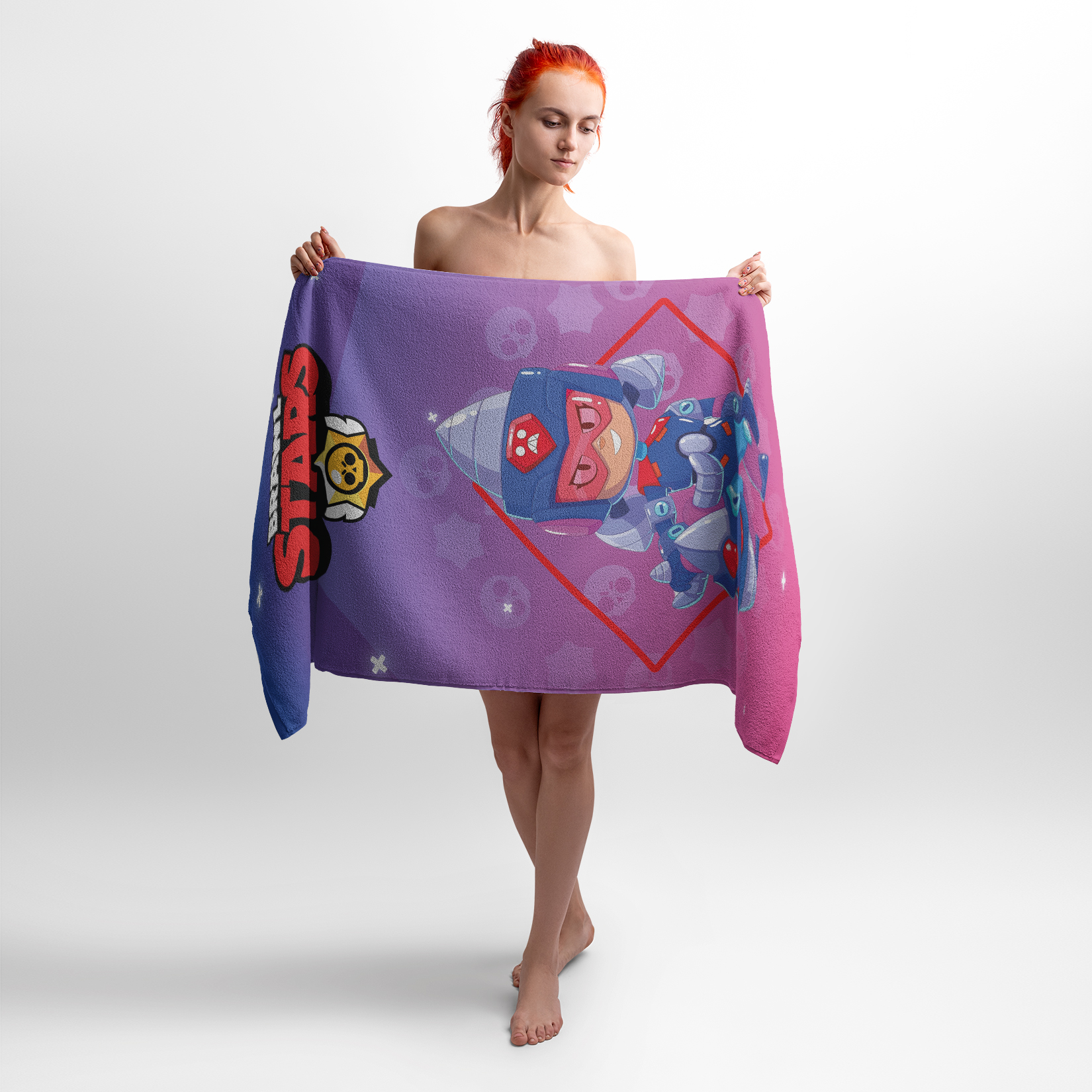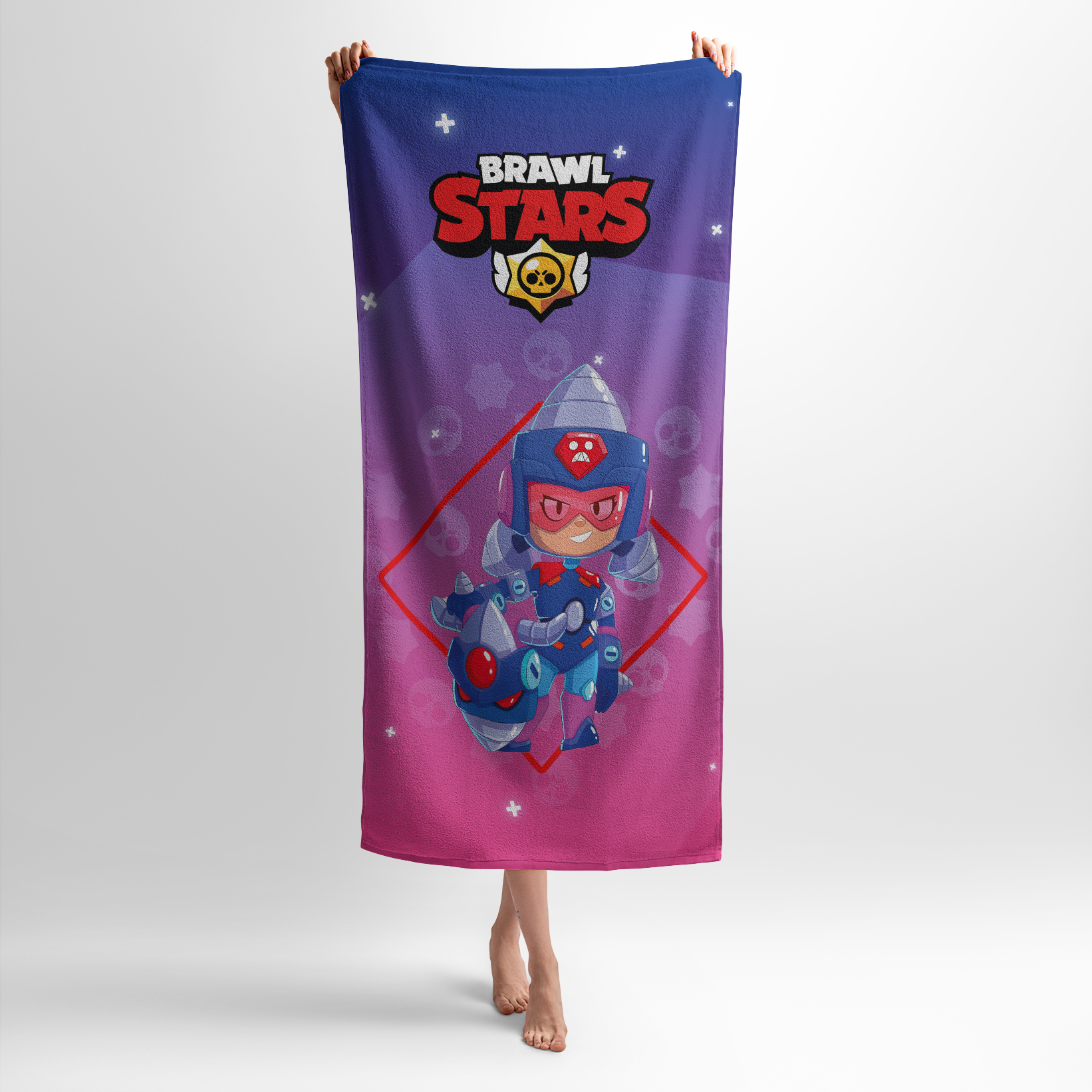 Рушник з принтом “Джекі. Бравл Старз” ідеально підійде фанатам гри Brawl Stars. Джекі — енергійна і витривала героїня, яка любить боротьбу і завжди готова до бою. Принт з її зображенням стане чудовим доповненням до інтер’єру чи аксесуаром для геймерів.