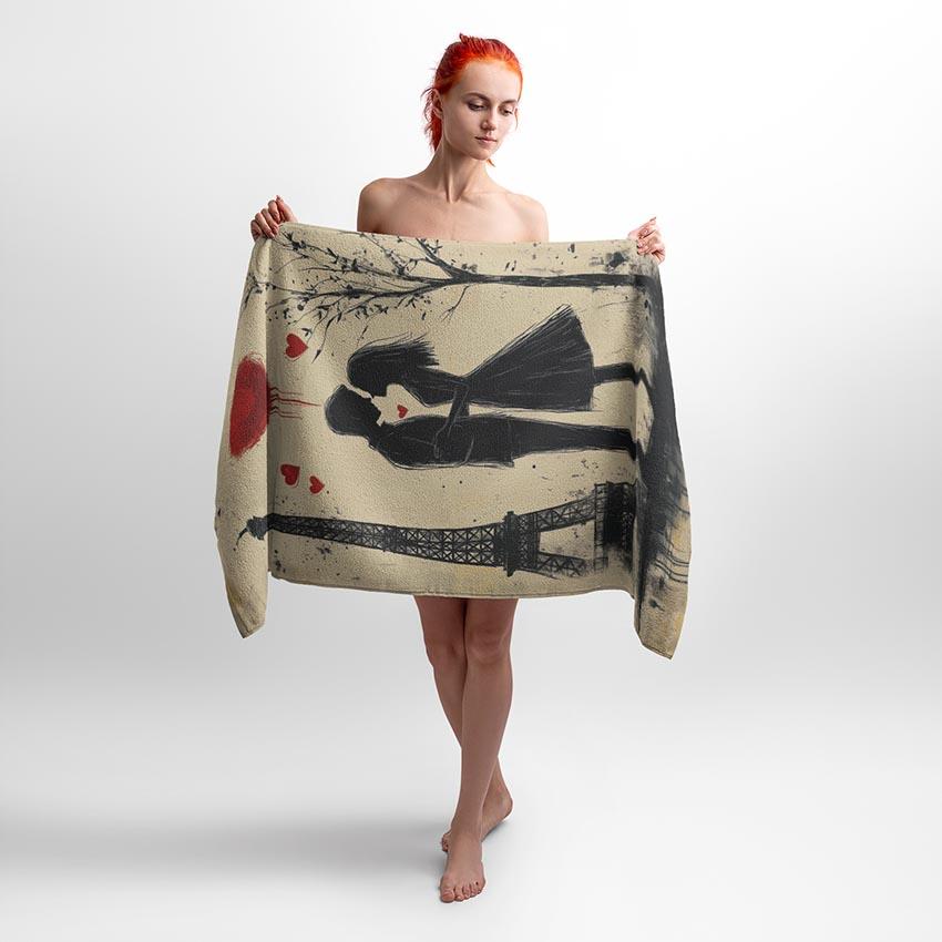 Принт передає атмосферу романтичного Парижа, з акцентом на закоханих і червоне сонце. Цікаве поєднання символів кохання та паризької естетики. Рушник з цим принтом підійде мрійникам, романтикам і тим, хто хоче підкреслити своє захоплення мистецтвом і любов’ю.