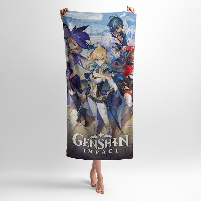 Рушник з принтом “Genshin Impact. Персонажі з Мондштадту” переносить вас у світ улюбленої гри. На ньому зображені харизматичні герої Мондштадту, які надихають своїми пригодами. Ідеальний вибір для фанатів Genshin Impact, геймерів і любителів стильного текстилю. Підійде для подорожей, тренувань або щоденного використання, додаючи нотку магії до вашого дня.