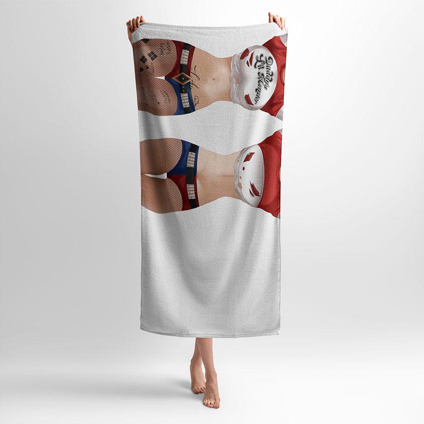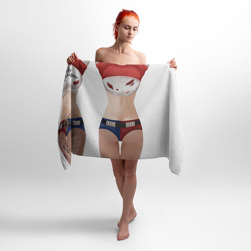 Рушник з принтом Харлі Квін — для тих, хто цінує свободу, бунтарство та яскравий стиль. Образ героїні поєднує шалену енергію та впевненість у собі. Підійде підліткам, фанатам коміксів, косплеєрам і всім, хто хоче додати у свій день трохи драйву. Незвичайний аксесуар для дому, спортзалу чи пляжу.