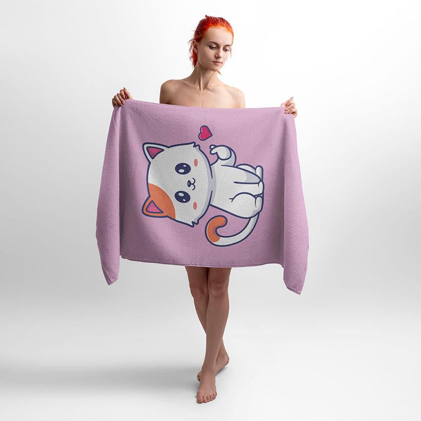 Цей принт — символ м’якої турботи. Котик з сердечком показує жест любові. Рушник з таким принтом підійде для тих, хто цінує тепло, затишок і має слабкість до котиків. Чудовий вибір для подарунка або для особистого користування вдома чи у подорожах.