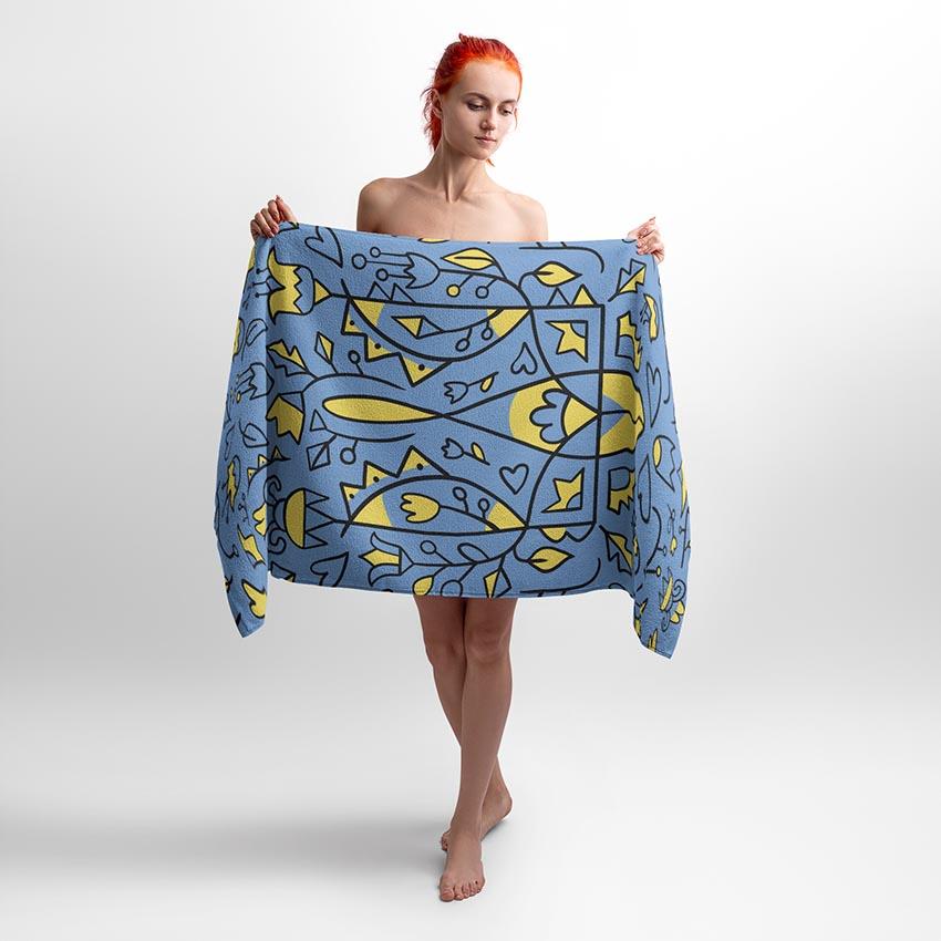 Рушник «Квітуча Україна» поєднує в собі ніжність квітів та національну символіку. Принт символізує красу, силу та відродження України. Ідеальний для тих, хто цінує традиції, природу та сучасний стиль. Підійде для дому, пляжу або як подарунок із патріотичним настроєм. Яскравий дизайн додасть кольору та натхнення у ваші дні.