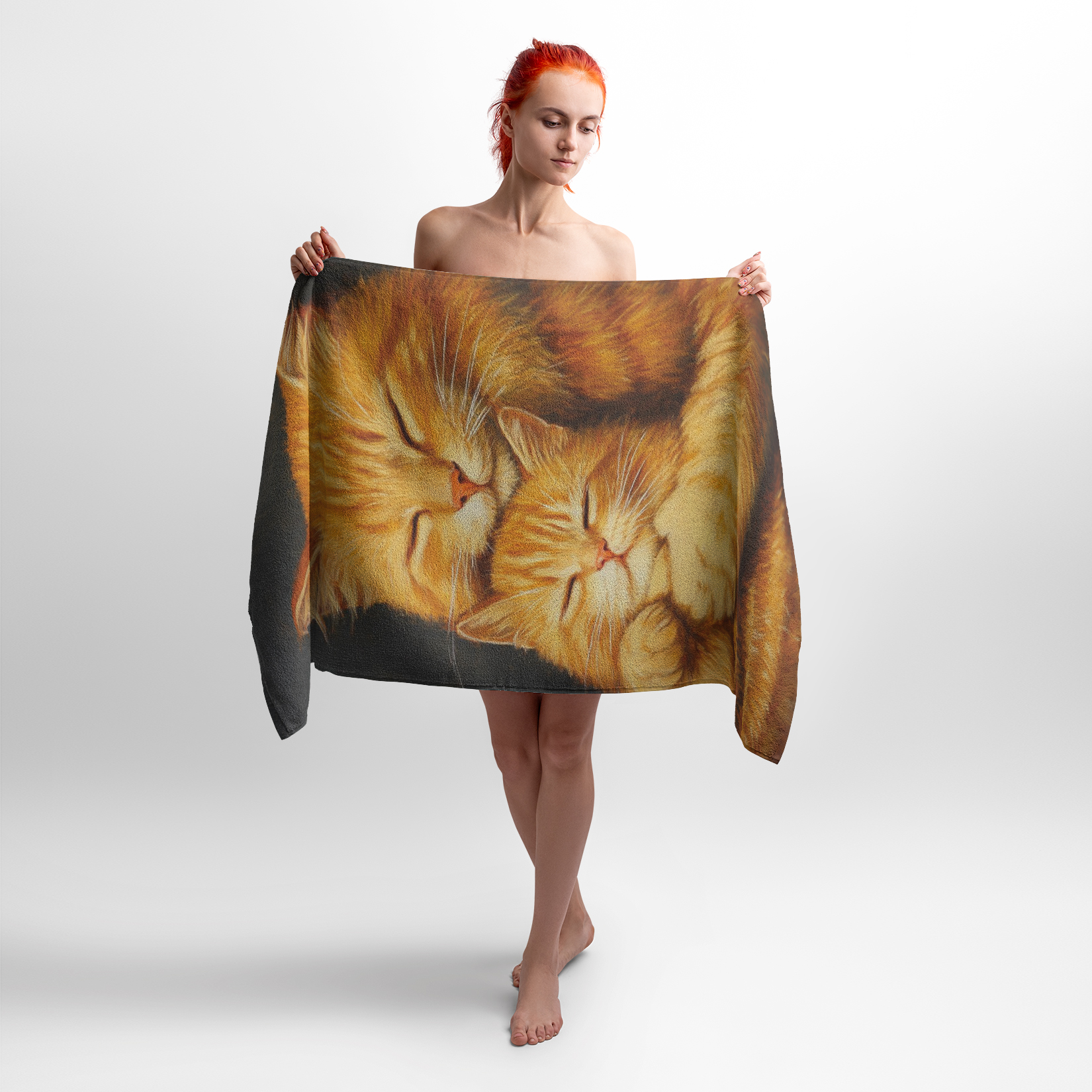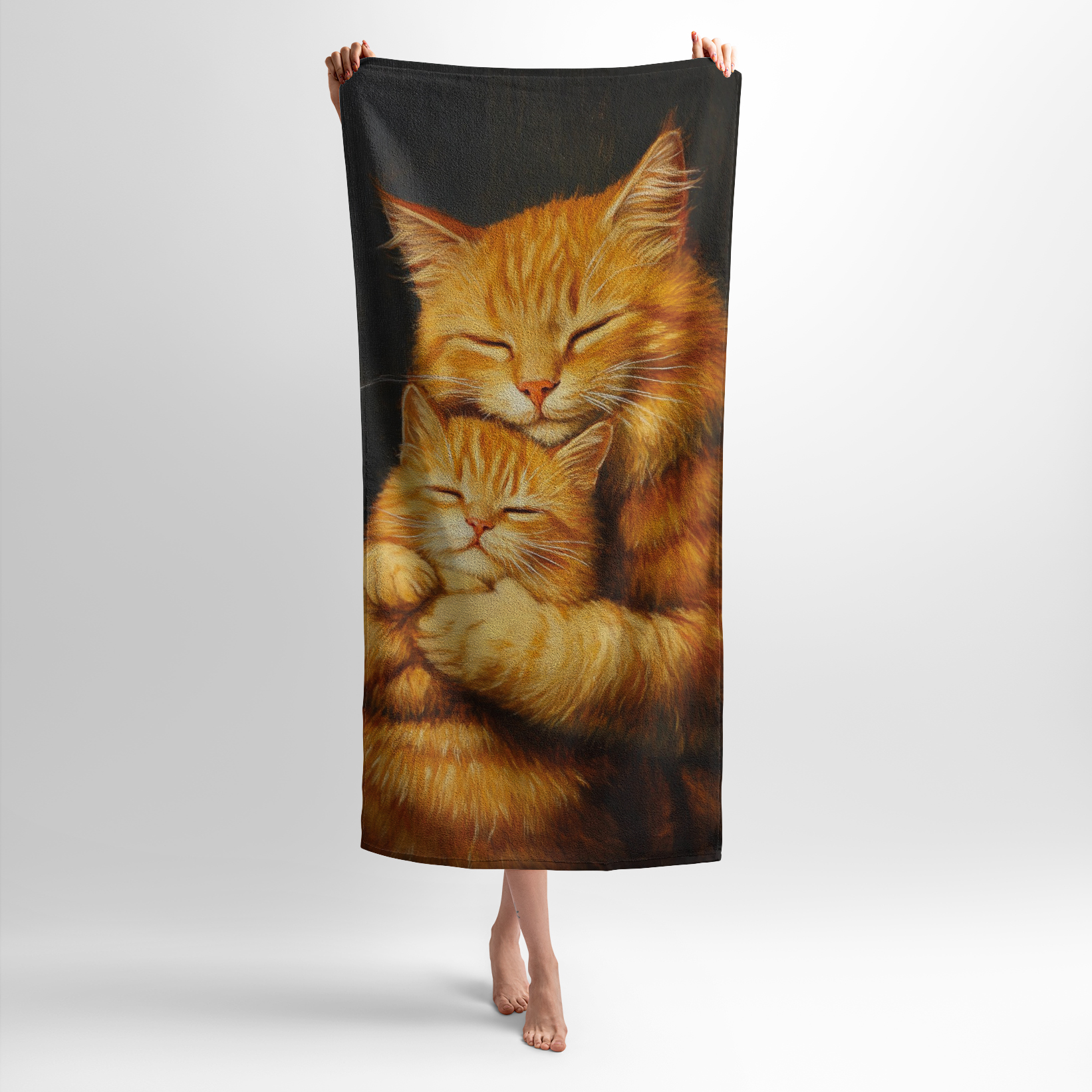 Принт із зображенням ніжних обіймів котиків дарує відчуття комфорту та радості. Рушник з таким принтом ідеально підійде для любителів котів, дітей і тих, хто хоче підняти настрій після душу або на пляжі.