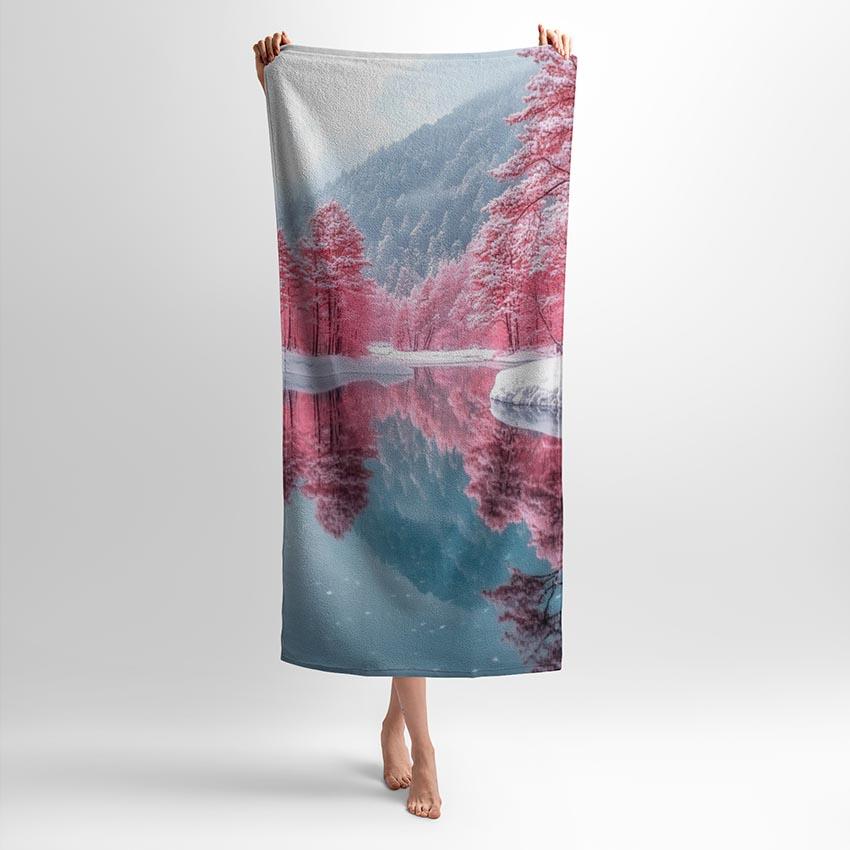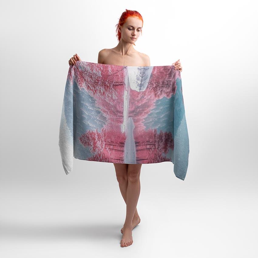 Принт передає атмосферу казкового лісу з відтінками рожевого, що символізує спокій, гармонію та романтику. Ідеально підійде для тих, хто цінує унікальність і мріє додати кольору у свій побут. Рушник з цим принтом стане чудовим вибором для дому, подорожей або як стильний подарунок.