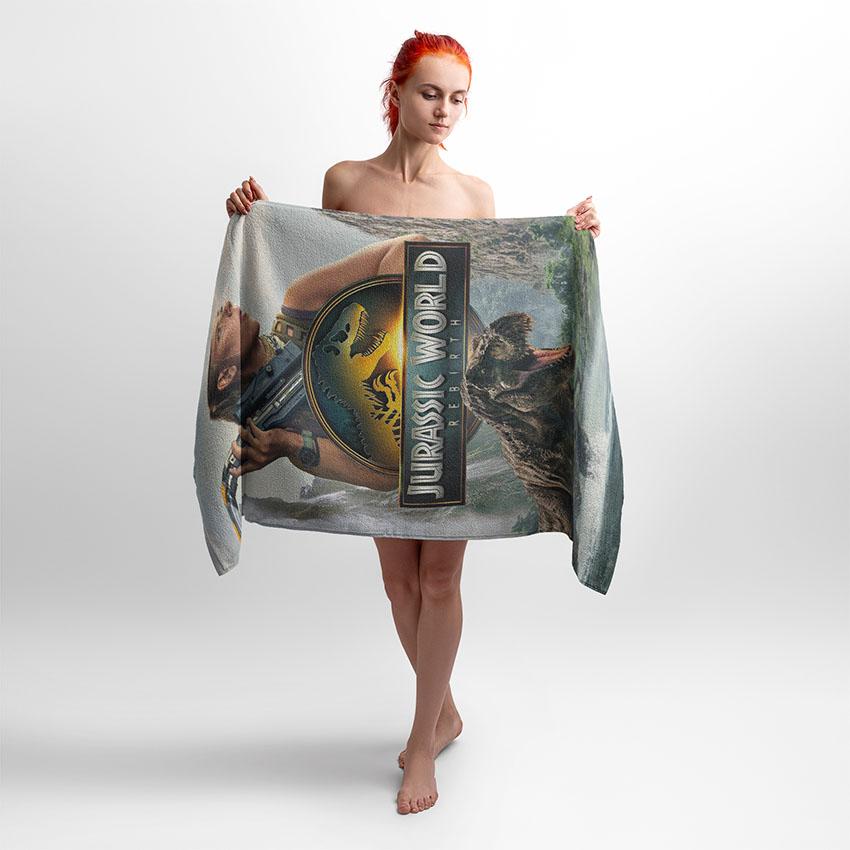 Рушник із принтом “Світ Юрського періоду. Атака Динозавра” — це яскравий сюжет з улюбленого кіносвіту. Динамічна сцена із динозавром сподобається шанувальникам пригод, дітям і підліткам. Такий рушник стане цікавим подарунком для фанатів динозаврів та фільмів про Юрський період.
