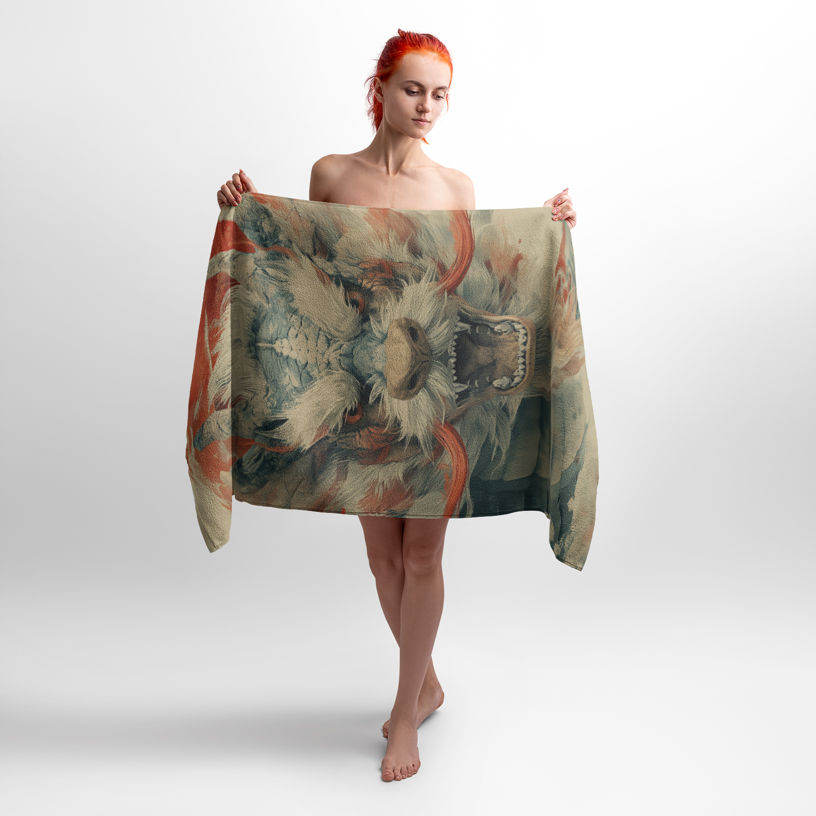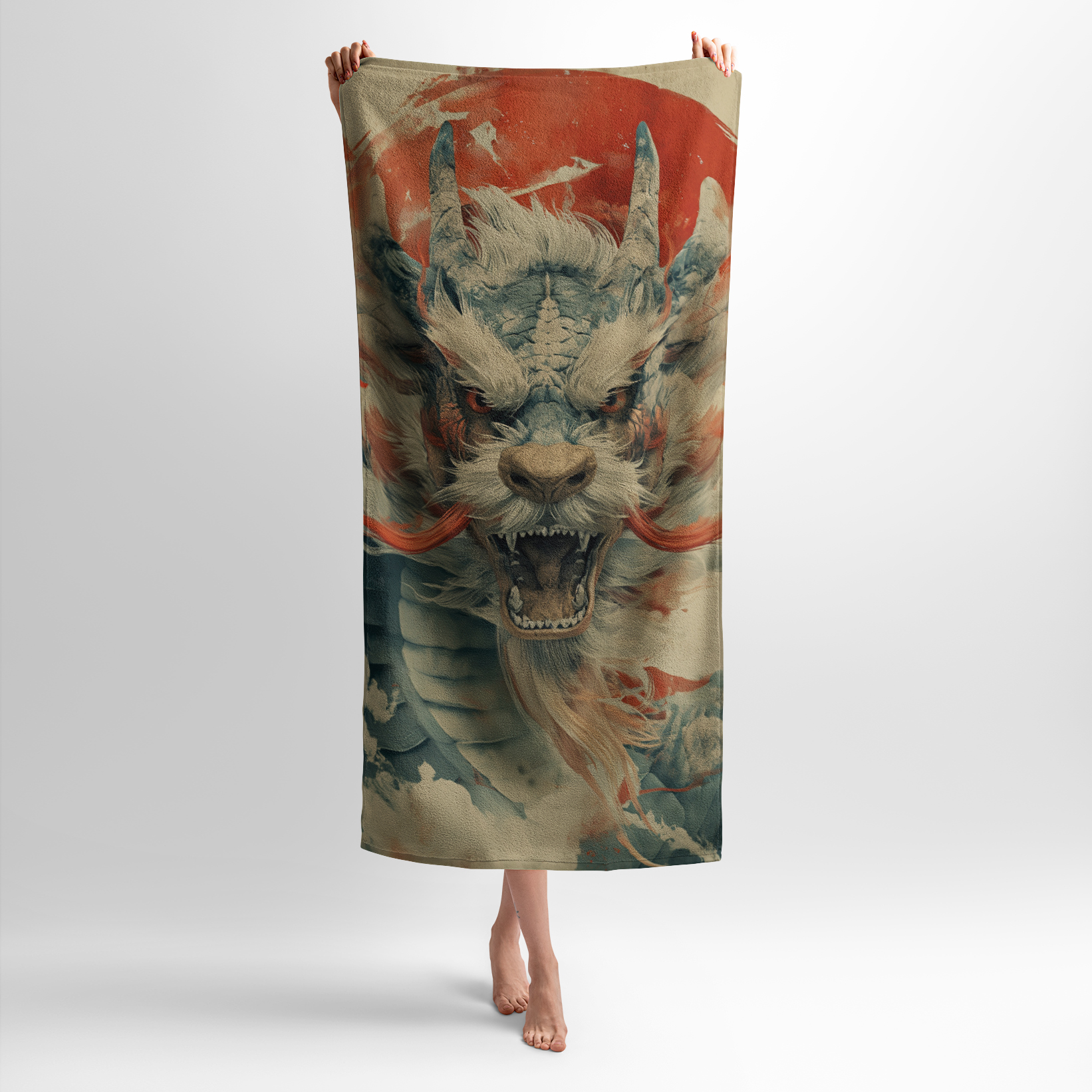 Принт з могутнім міфічним драконом на фоні червоного сонця, втілює силу і велич. Глибокі кольори та деталі символізують давню легенду, прославляючи традиції Японії. Рушник з таким принтом ідеально підійде фанатам фентезі та всім, хто цінує мистецтво східної культури.