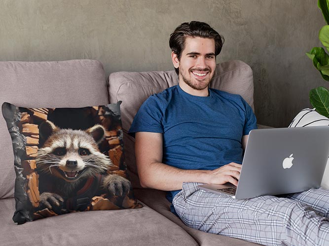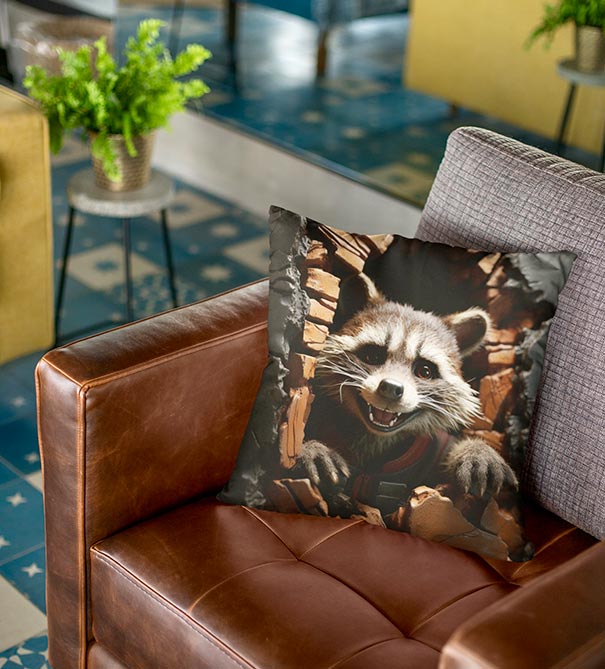 Декоративная подушка «Rocket Стражи Галактики» пошита из мягкого, приятного на ощупь флока. Наполнитель подушки — холлофайбер высокого качества.