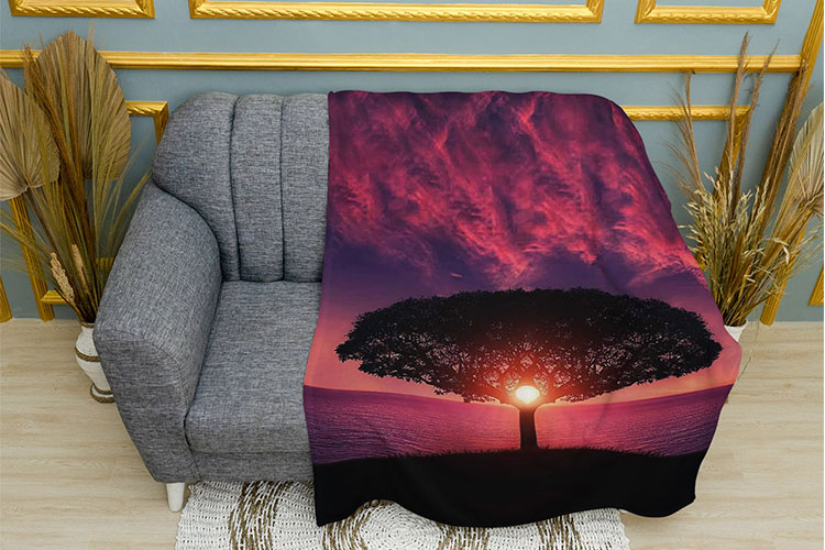 Ткань пледа «Дерево на закате. Tree at sunset»