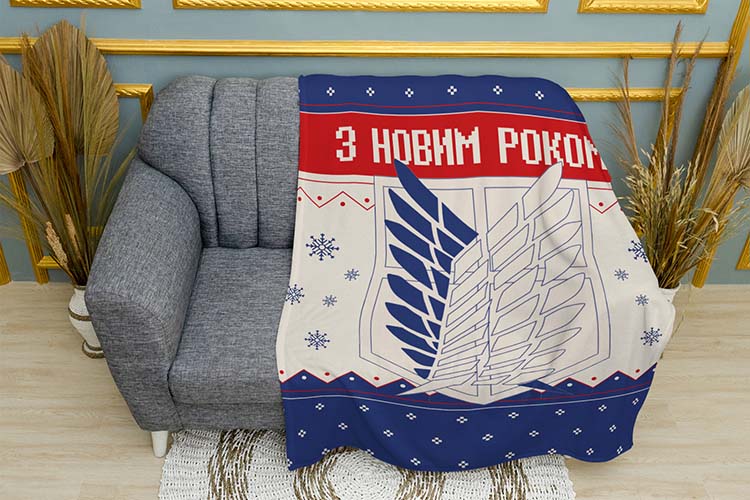 Как купить плед с принтом «Разведывательный корпус. Атака Титанов. Зимняя Защита. Intelligence corps. Attack on Titan. Winter Defense» в Украине и Киеве?