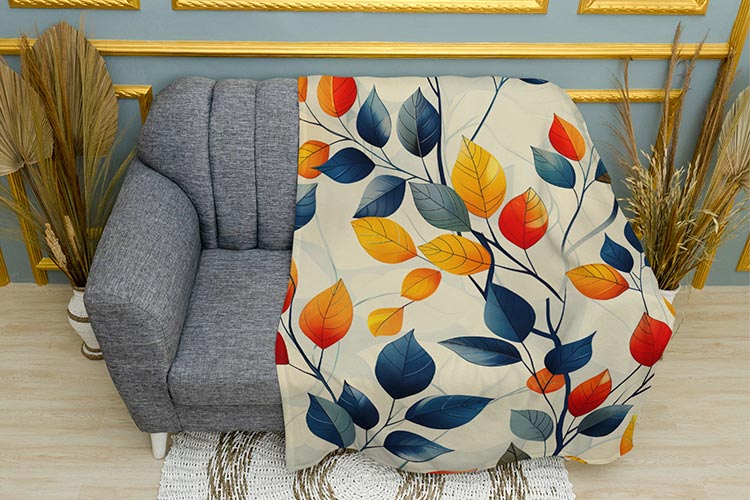 Ткань пледа «Ветки. Цветные листья. Branches. Colored leaves»