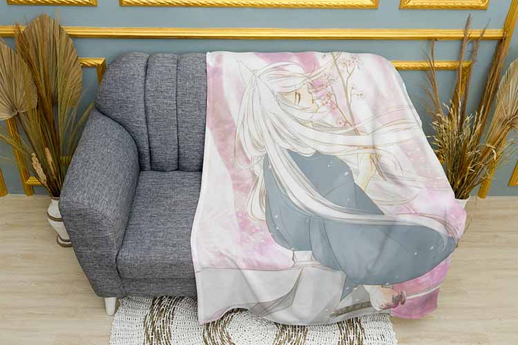 Ткань пледа «Томоэ с сакурой. Очень приятно Бог. Tomoe with sakura. Nice to Meet You, Kami-sama»