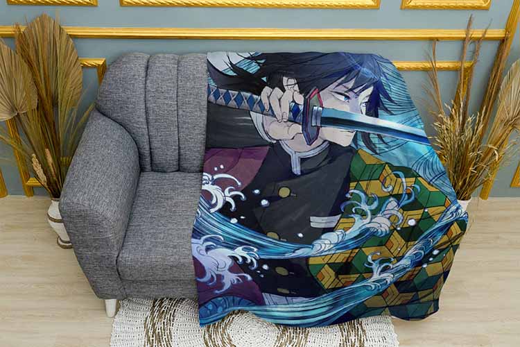 Ткань пледа «Томиока Гию с мечом. Клинок, рассекающий демонов. Tomioka Giyuu with a sword. Demon Slayer»