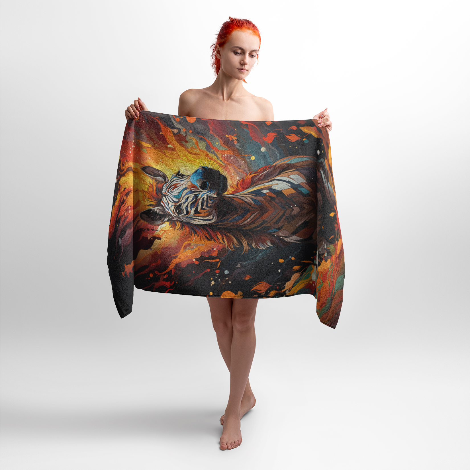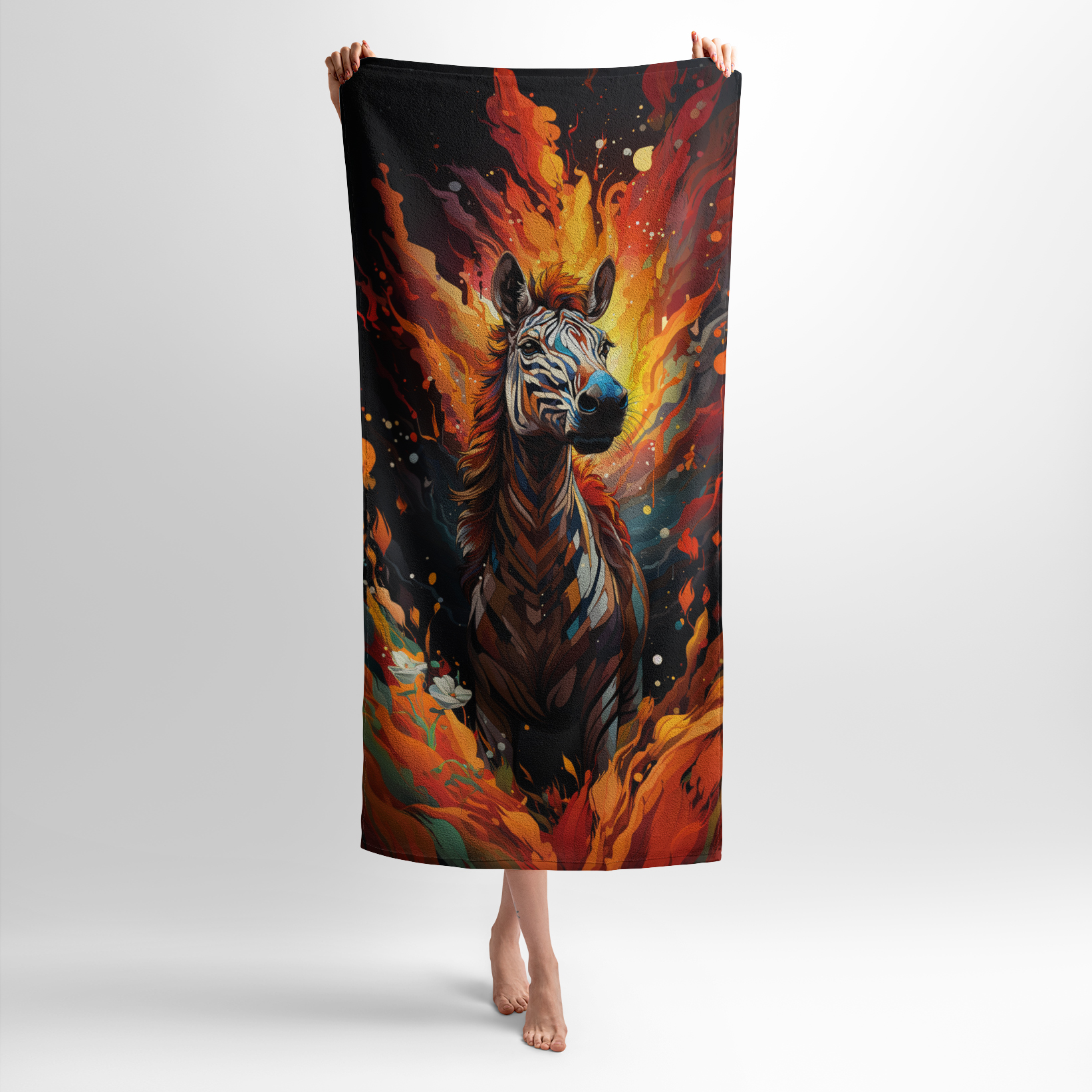 Этот принт с зеброй на фоне пламени символизирует силу и динамику природы. Яркие цвета привлекают внимание и создают эмоциональное настроение. Изделие отлично подойдет любителям животных, искусства и ярких аксессуаров. Он станет отличным дополнением к вашей жизни.