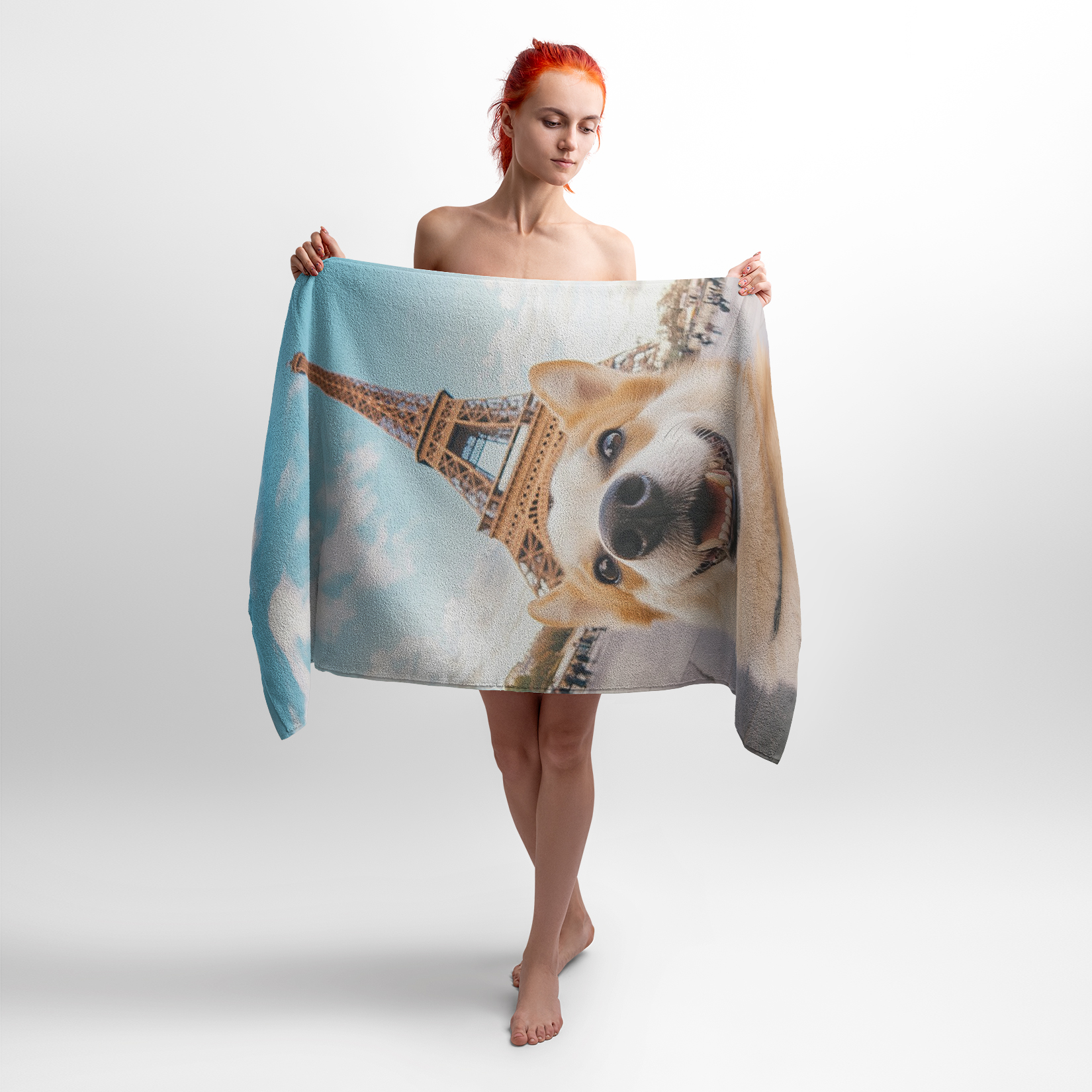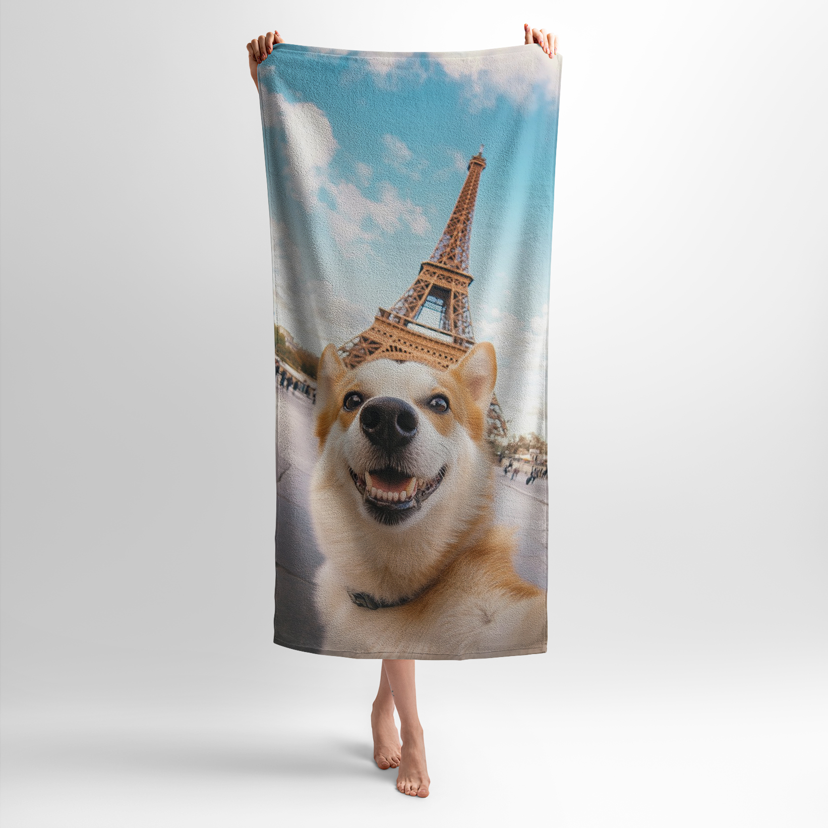 Этот принт с корги на фоне Эйфелевой башни создает атмосферу веселья. Полотенце с таким принтом идеально подойдет для тех, кто любит уют, мечтательные путешествия и хочет добавить в интерьер нотку тепла и юмора. Отличный подарок для романтиков, любителей животных и Парижа.