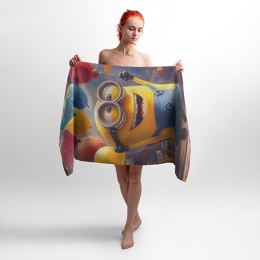 Этот принт изображает веселого миньона в праздничной атмосфере с воздушными шарами. Полотенце с этим принтом подойдет для фанатов мультфильмов, детей и тех, кто ищет радость в обычных вещах. Оно добавит веселой нотки в любой интерьер.