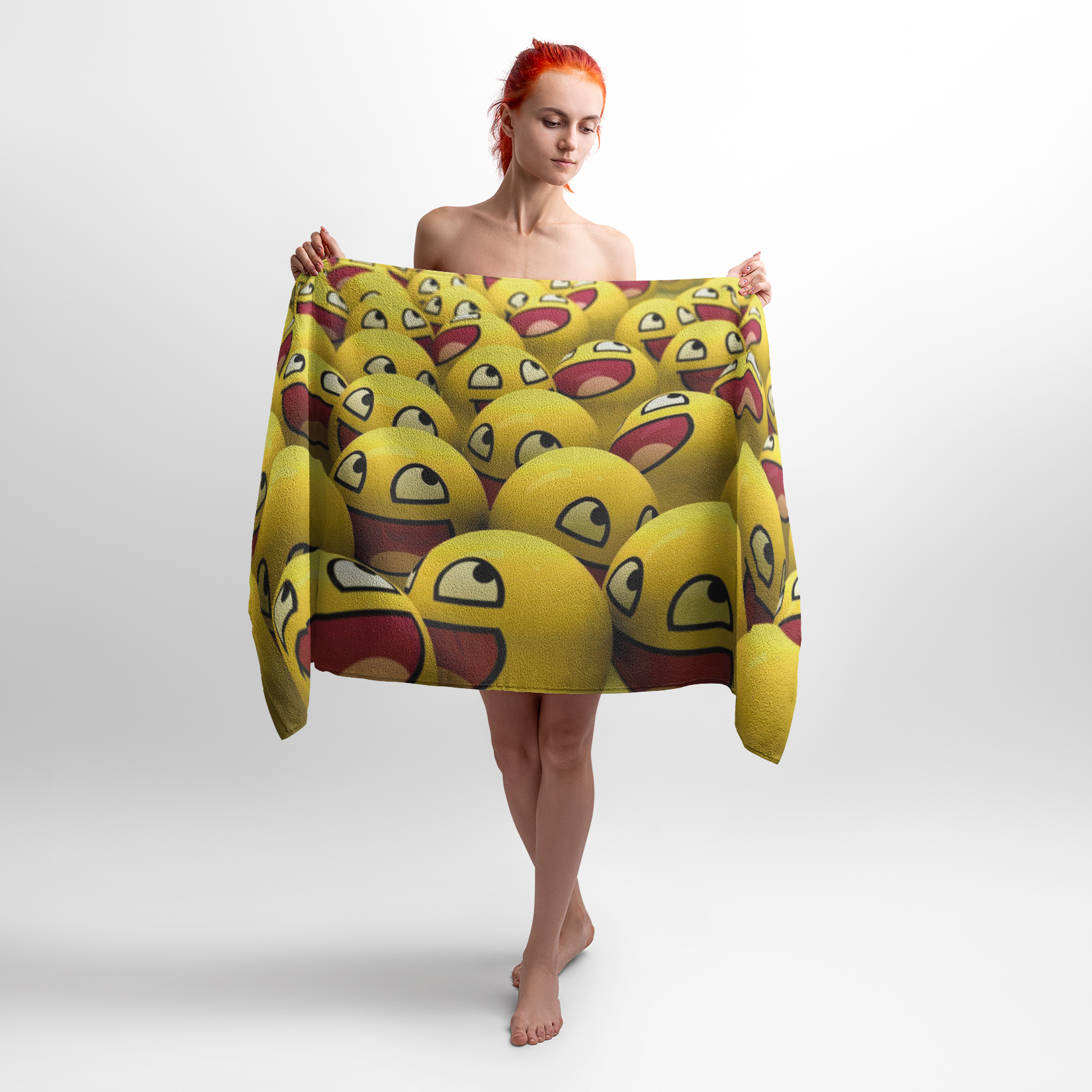 Этот принт с веселыми желтыми смайликами добавляет настроение и позитив в любую среду. Яркие и игривые эмоции создают атмосферу радости и легкости. Полотенце с этим принтом идеально подходит для молодежи и любителей юмора. Стильный подарок для друзей, которые ценят положительные впечатления.