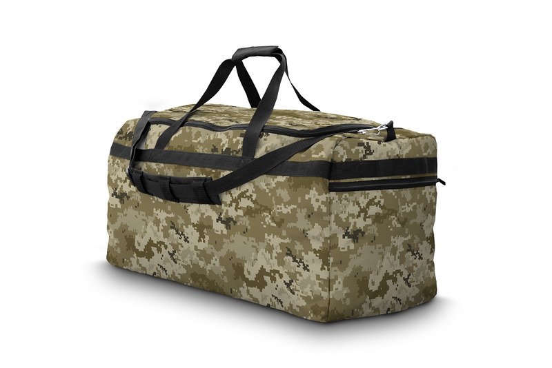 Сумка дорожная армейская «Трип» пиксель sand, объёмом 76 литров изготовлена из материала Оксфорд плотностью 230 гр/м.кв 600 DEN. Прочная синтетическая ткань с дополнительным слоем водоудерживающей пропитки, легко отстирывается, не трескается и не расслаивается при минусовой температуре.
