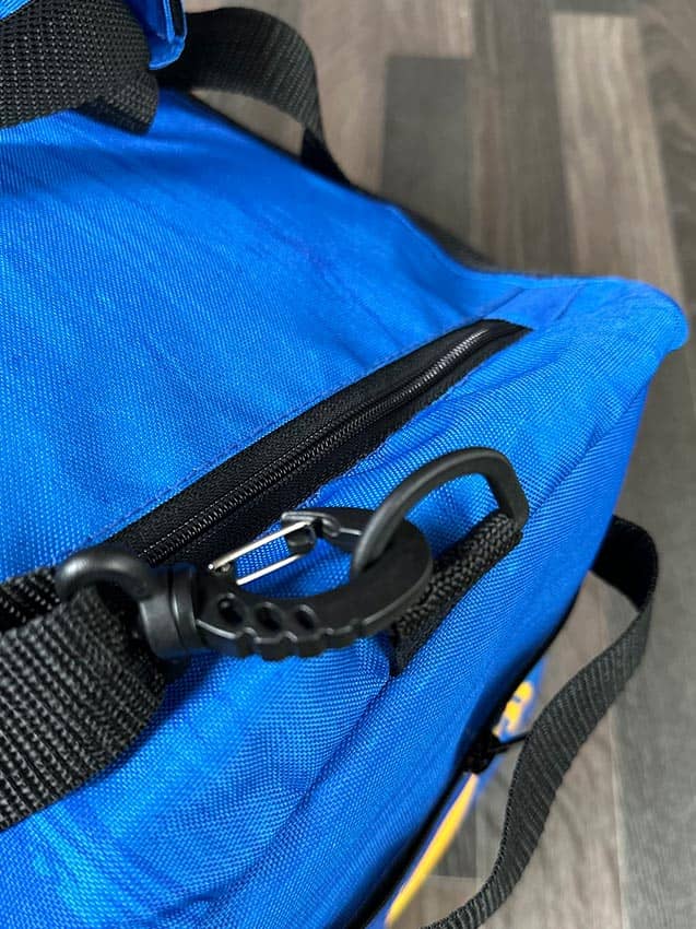 Сумка имеет внутренний карман на молнии, и по одному карману с каждого торца, также застёгивающихся на молнию. Плечевая лямка крепится с помощью металлических карабинов на вшитые металлические полукольца. Отлично подходит как для сборов, поездок на соревнования и просто путешествий, а также для тренеров, т.к. может вмещать в себя большое количество спортивного инвентаря. Вы можете заказать спортивную сумку с печатью названия спортивного клуба или команды, своего имени, nickname и т.п.